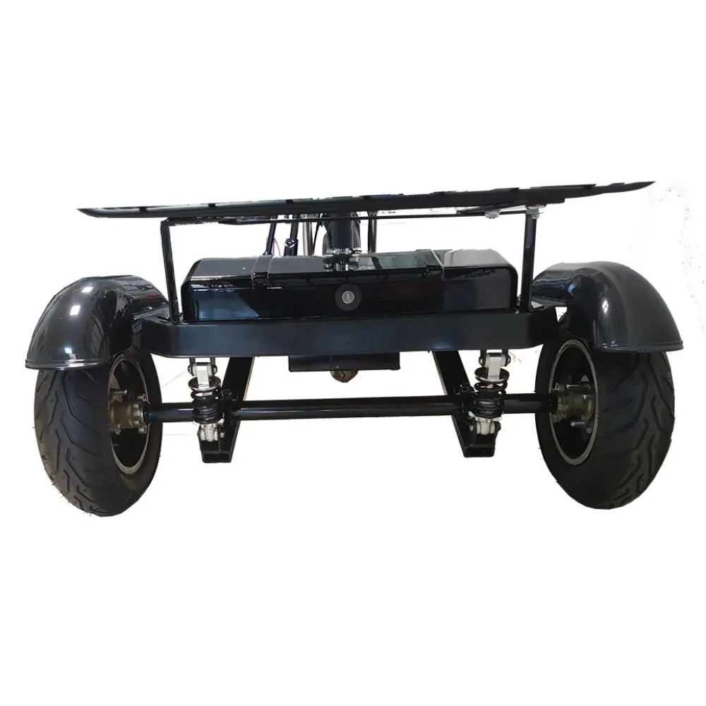 Стальная рама оснащена широкой платформой для ног для большего комфорта езды. Бесколлекторный мотор выдает 500 Вт, а пиковая мощность составляет 750 Вт. В максимально короткие сроки техника разгоняется до 35 км/час. Брендовый АКБ напряжением 48 В заряжается за 8 часов. Пользователь легко может пройти до 40 км пути без подзарядки. Передний дисковый тормоз прост и понятен в управлении. Телескопическая вилка на амортизаторах смягчат наезд на дорожные ямы. Шоссейные 16 дюймовые колеса имеют протекторы и надежно защищены пластиковыми крыльями. Для большего комфорта поездок техника оснащена вместительной корзиной на замке.