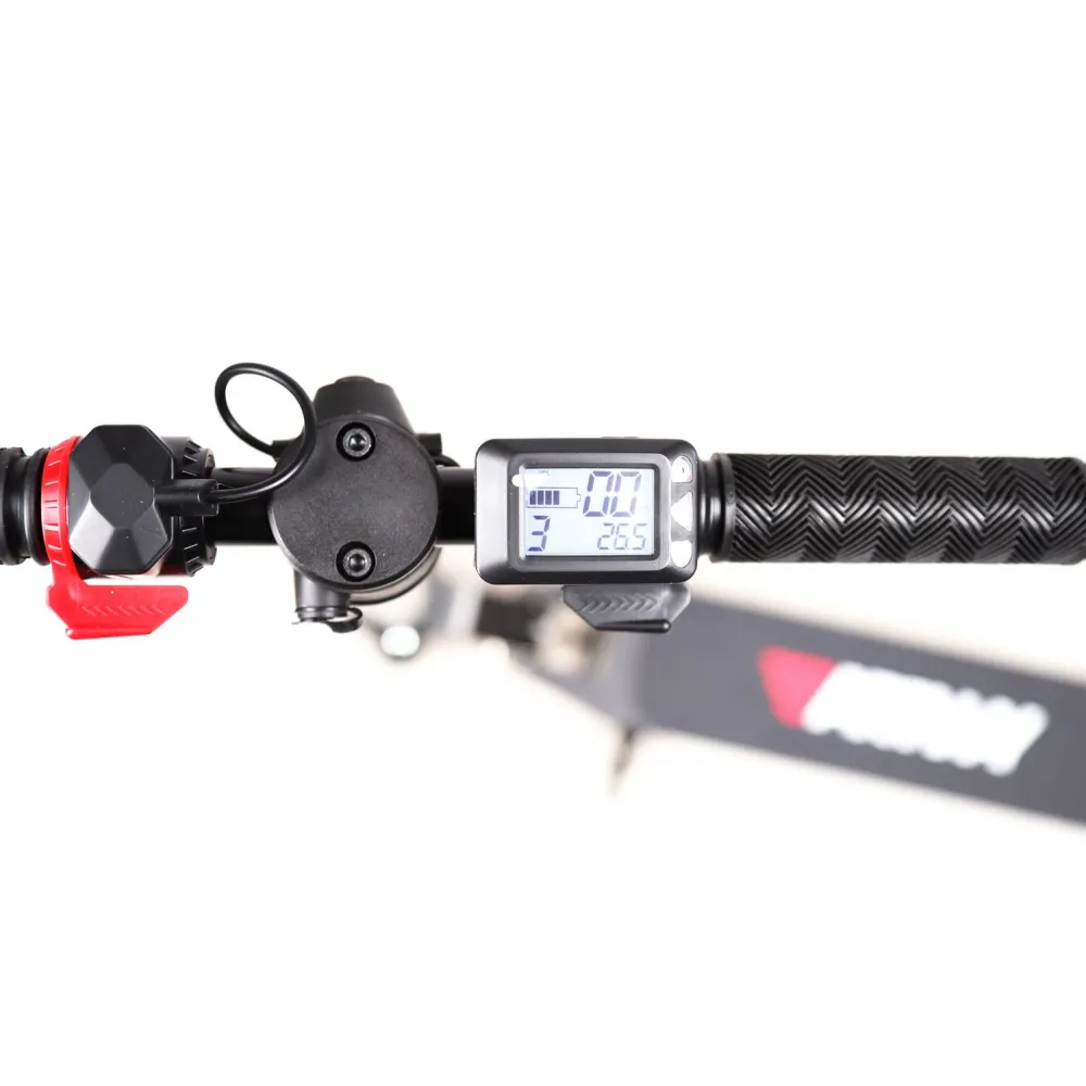 Отдельного внимания заслуживает стильный внешний вид устройства. Модель выполнена в лаконичном стиле, подчеркивающем черный цвет корпуса. Тонкие фары дополняют современный дизайн электрического самоката и обеспечивают яркое освещение дороги в темноте. Складная конструкция повышает удобство хранения и переноски. Электросамокат Artway AM-2444 оснащен электронным дисплеем, где пользователь может видеть основные показатели движения, включая скорость и уровень заряда батареи.