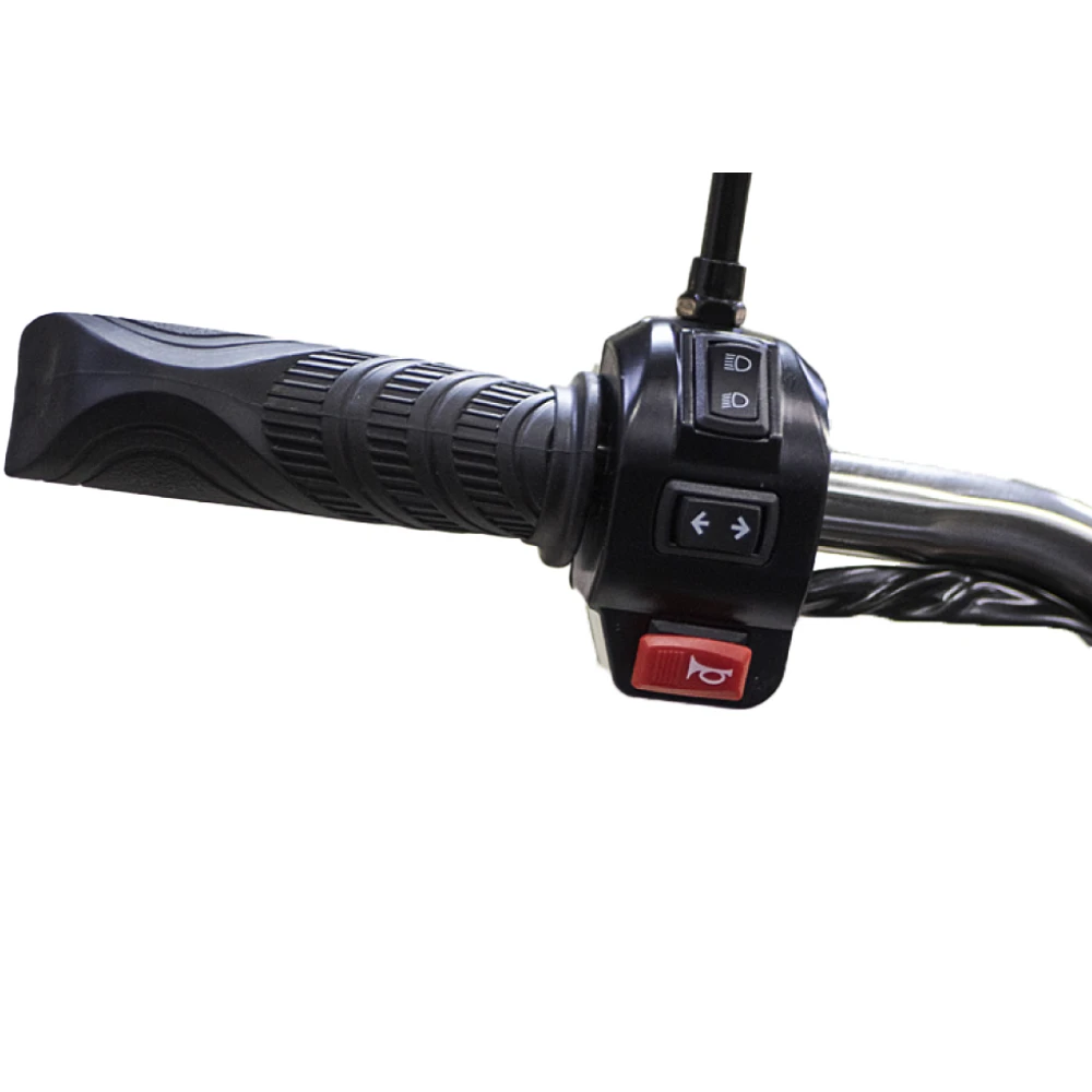 Грузовой электротрицикл Rutrike D4 NEXT II 60V1500W синий – мощная техника в презентабельном дизайне моментально привлекает внимание представителей бизнеса и фермеров. Объемный багажник, вместительное виденье, лучшие параметры удобства и комфорта заставляют внимательнее присмотреться к техническим характеристикам. Наш интернет-магазин предлагает купить электротрицикл по разумной стоимости. Каждому покупателю гарантирована бесплатная консультация, помощь в оформлении заказа. Модель оснащена мощным движком на 1500 Вт, который в сочетании с емкой батареей (от 55А*ч) обещает максимальный разгон до 25 км/час, которого хватает на преодоление дистанции до 80 км. Производитель обращает внимание, батарея не входит в комплектацию. Купить АКБ, подобрать максимально совместимую можно благодаря нашему интернет-магазину. Из других преимуществ производитель выделяет максимальную оснащенность функционалом. Техника оборудована зеркалами заднего вида, гидравлической амортизационной подвеской, информационным дисплеем. Имеется дополнительное место для пассажира. Широкая платформа для ног в сочетании с сиденьем исключает дискомфорт и проблемы с позвоночником. Широкие колеса (переднее х заднее - 3,50-R12 х 4,00-R12) отлично сцепляются с грунтом. Вместительный кузов размерами 3270 x 1200 x 1450 ДхШхВ – настоящая находка для предприимчивых личностей