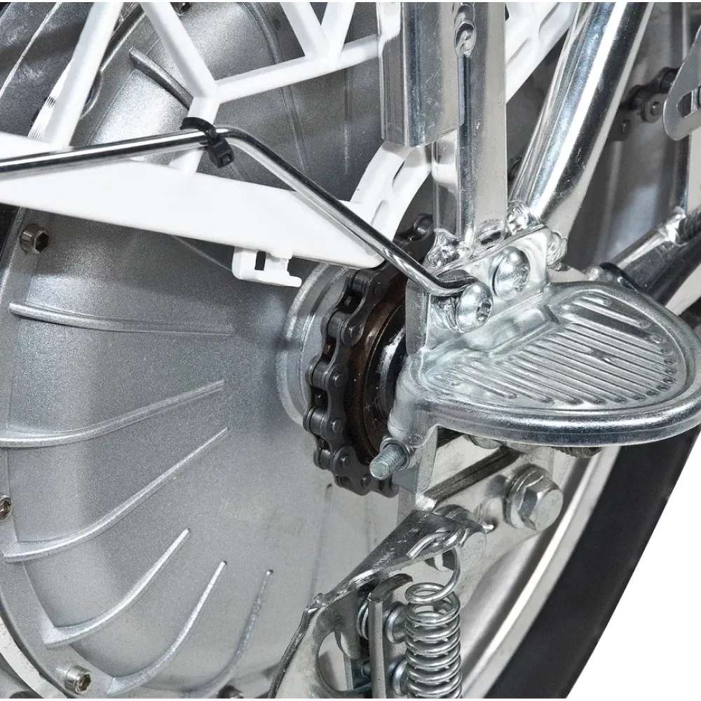 При мощности двигателя 500 Вт максимальная скорость составляет 55 км/час. Наличие емкой АКБ в сочетании с другими элементами тс допускает преодоление 55 км пути на 1 подзарядке. При переходе на педальный режим дальность пути увеличивается. Безопасность ездока обеспечена качественной гидравлической системой, отлично сцепляемыми с поверхностью большими колесами, стоп фарами и зеркалом заднего вида.