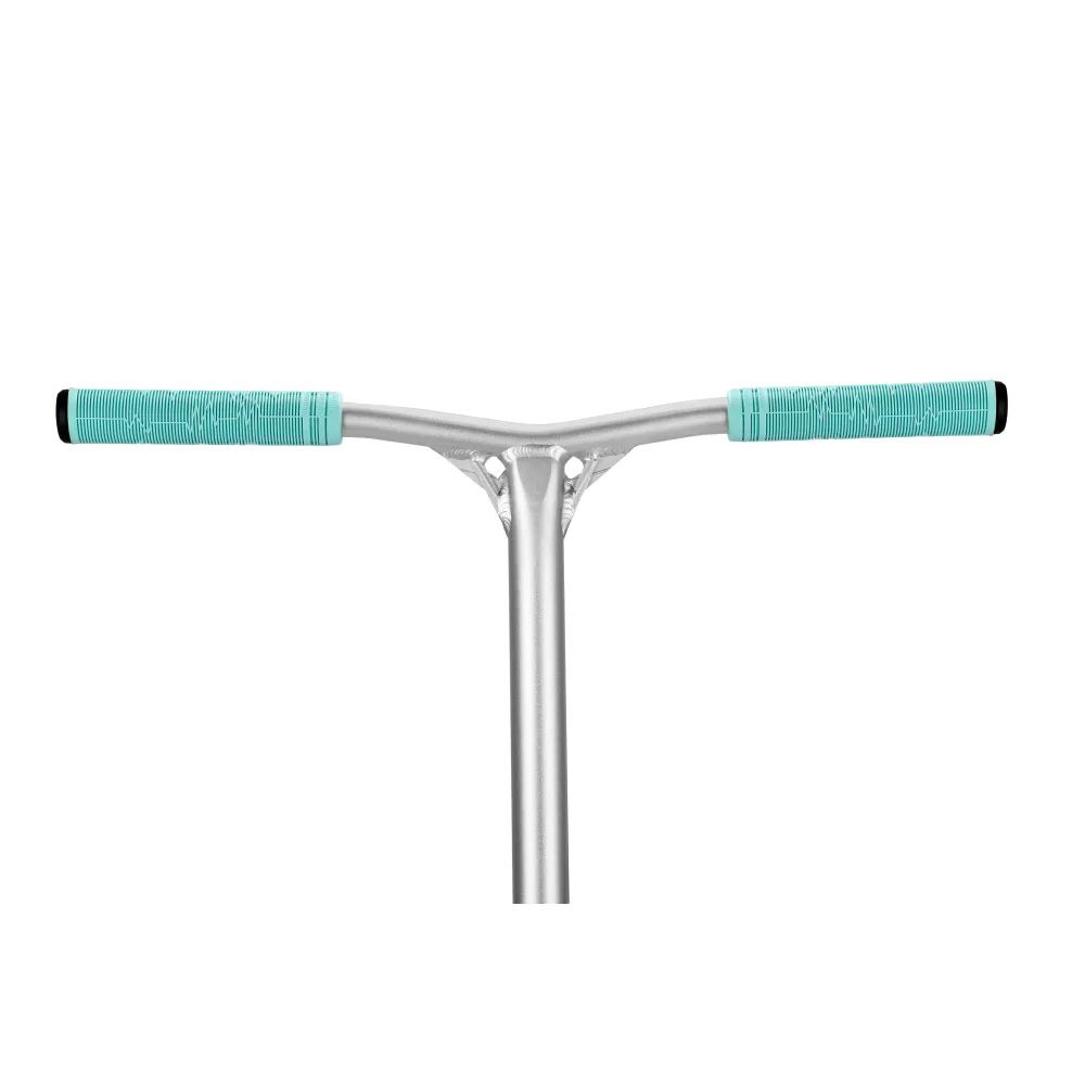 Этот трюковый самокат создан для профессиональной езды в парке. Скоростные колёса диаметром 110 мм, выполнены из алюминия, придают самокату максимальную скорость. Манёвренность и хороший отскок самоката обеспечивает покрытие колёс из полиуретана 88А, имеющих ширину 26 мм. У самоката имеются высококачественные подшипниками АВЕС 9, придающие самокату хороший накат.